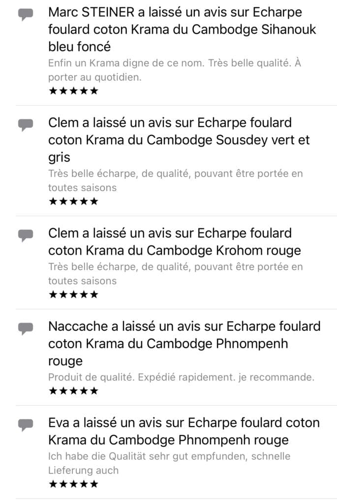 Avis client : "Magnifique écharpe du Cambodge, top qualité ! " – Franck M.